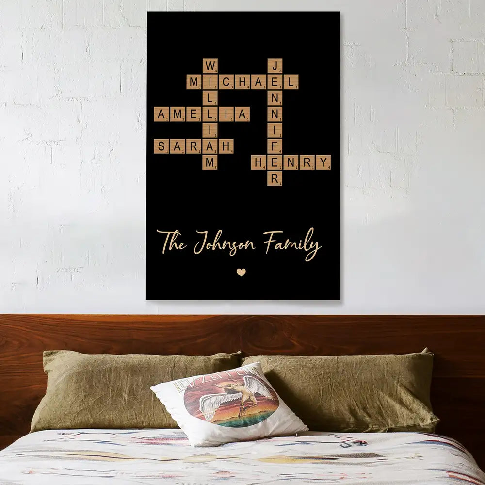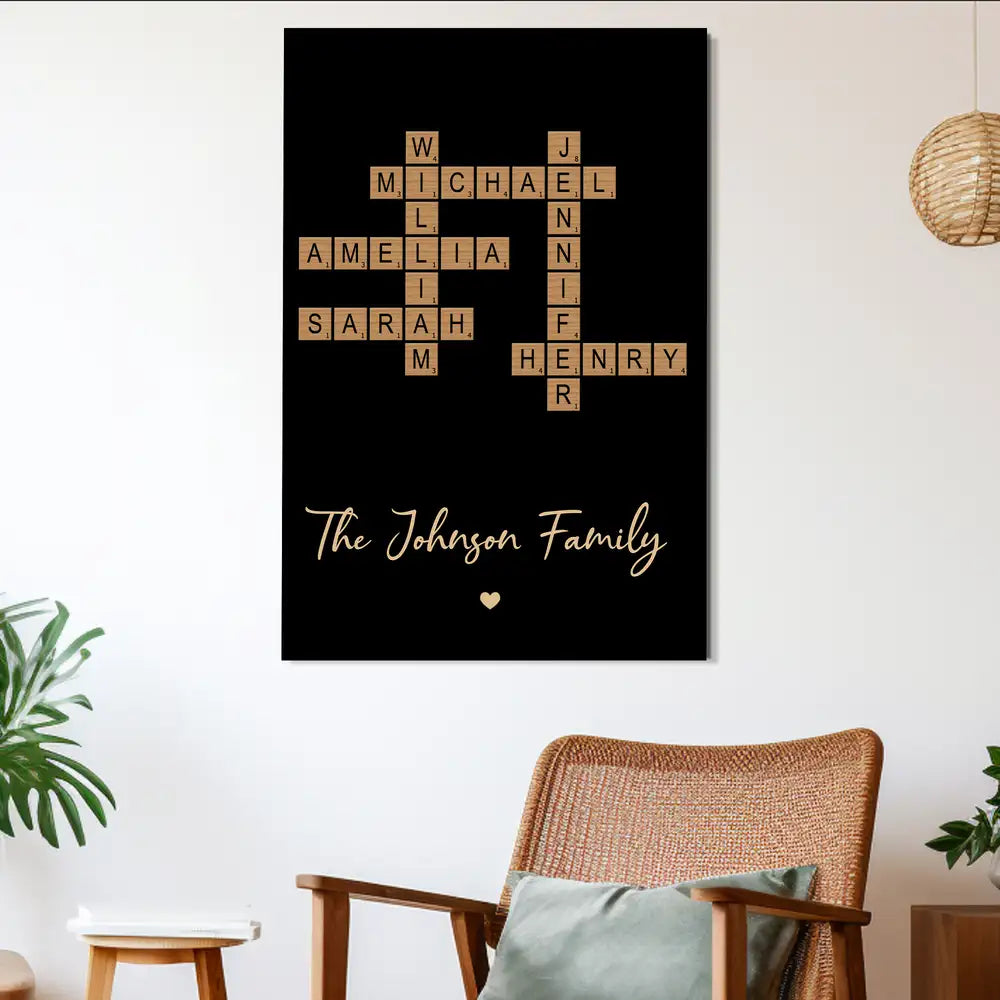 Custom Family Name Poster - Personalized Crossword Design Canvas