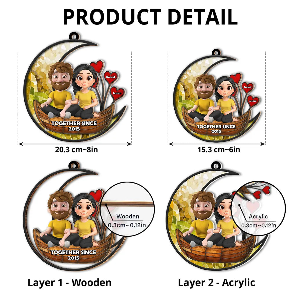 Romantic Moon Couple Wood and Acrylic Layered Ornament - Together Since Anniversary Gift for Lovers