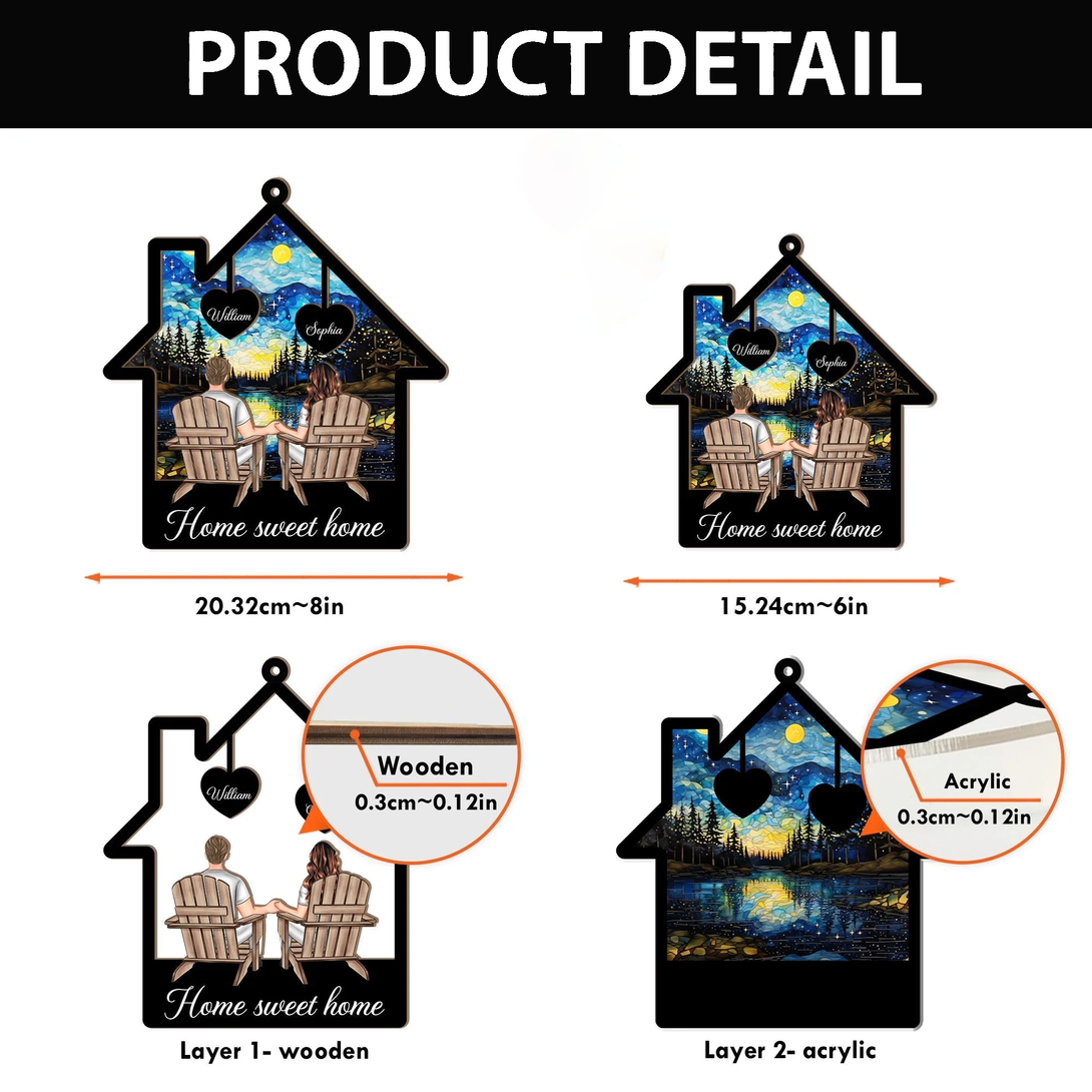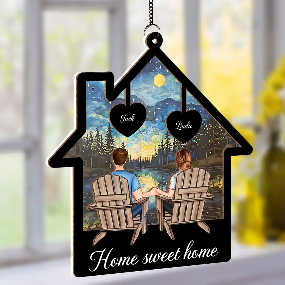 Celebrate the love that turns a house into a home with this heartwarming ornament. Featuring a couple holding hands beneath a starry sky, this design embodies peace, intimacy, and togetherness. The quote "Home Sweet Home" beautifully reinforces the sense of belonging that only love can create.